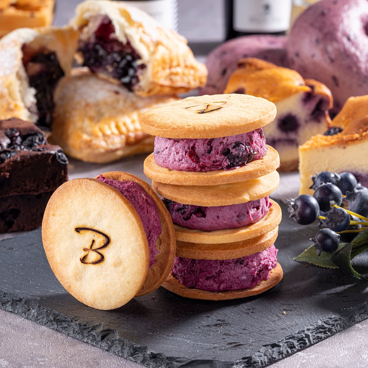 当店自慢の完熟ブルーベリージャムをたっぷり混ぜ込んだ特製バタークリームを、さっくりと香ばしく焼き上げたサブレでサンドしました。